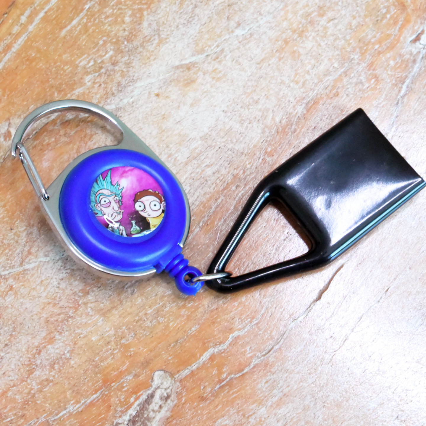 Elle se compose d'uns système type mousqueton et d'un cordon rétractable de 60cm de long.