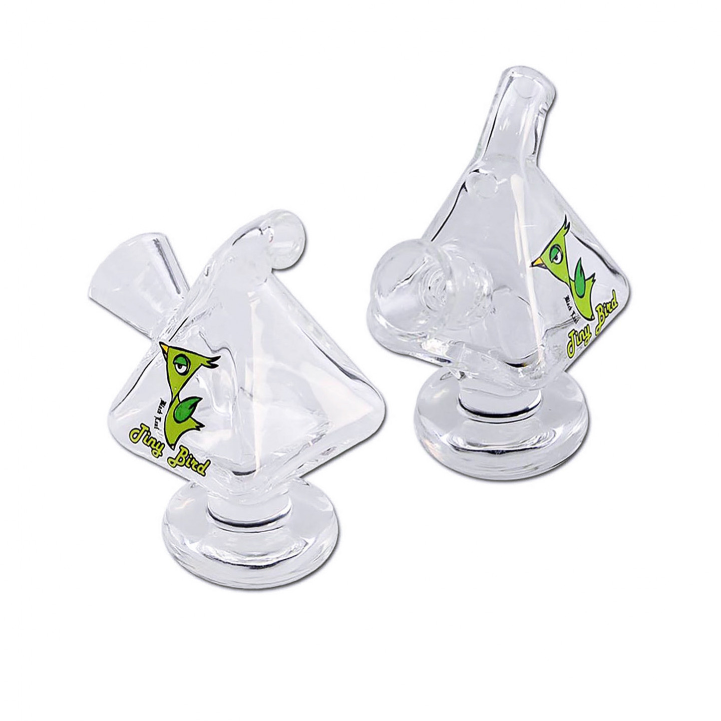 Bubbler compact Tiny Bird en verre borosilicaté, conçu pour une fumée adoucie grâce à l’eau.