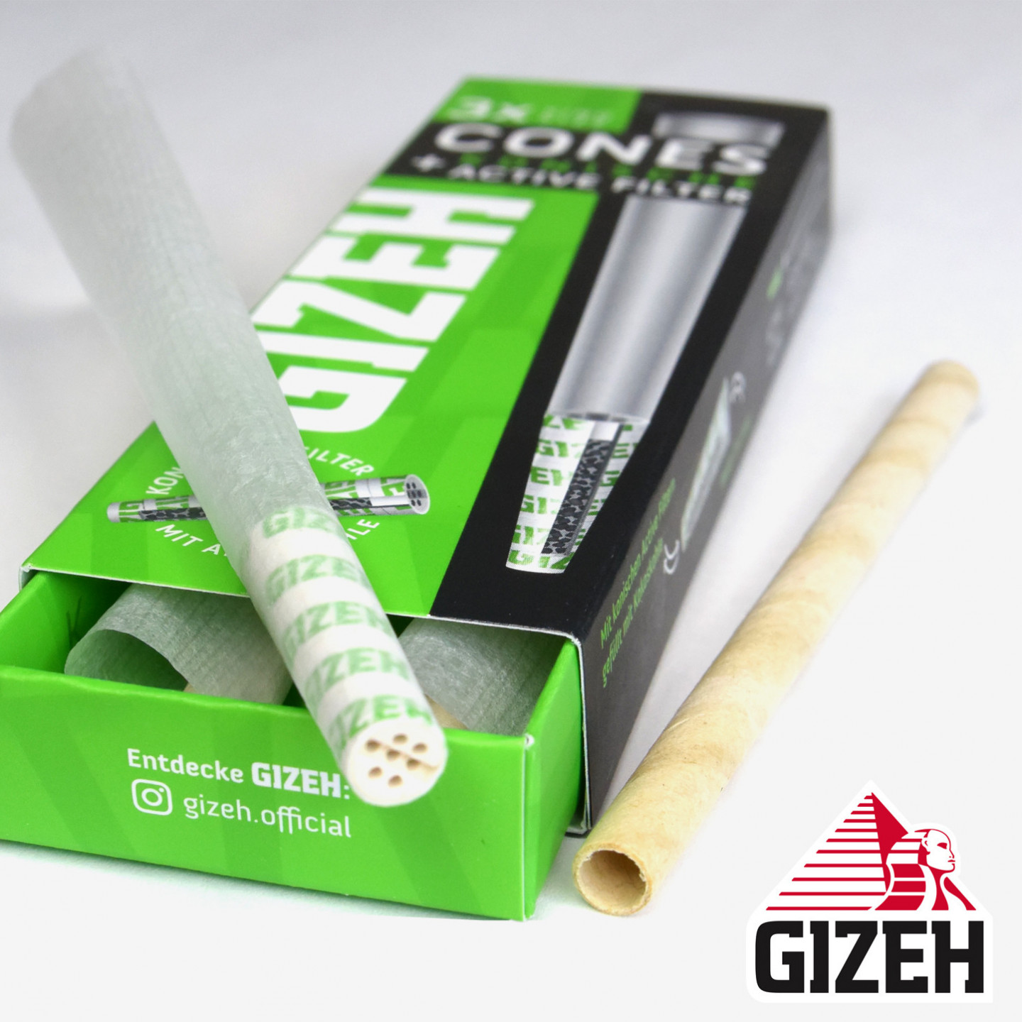 Pack de 3 cônes king de 11cm size soigneusement pré-roulés de la marque GIZEH.
