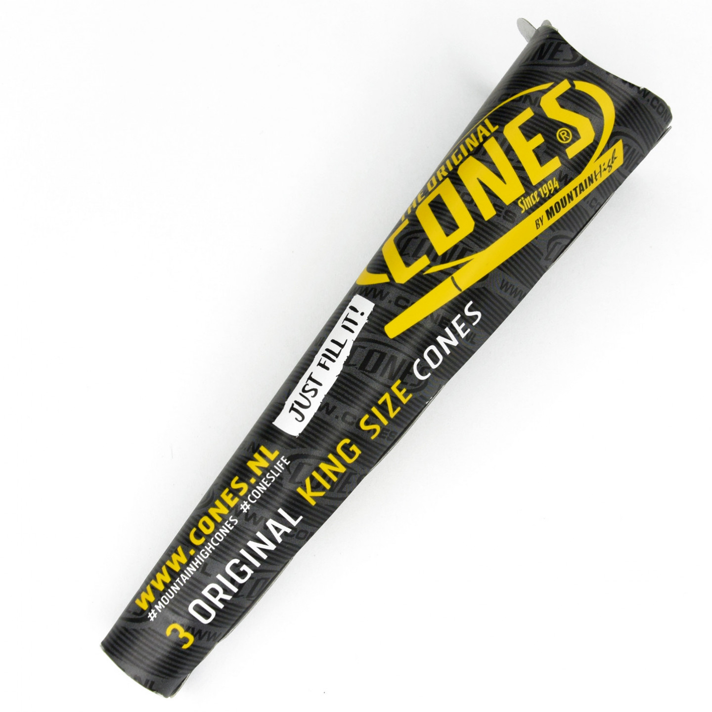 Pack de 3 cônes king size de 11 cm pré-roulés équipés d'un filtre en carton en forme de W.