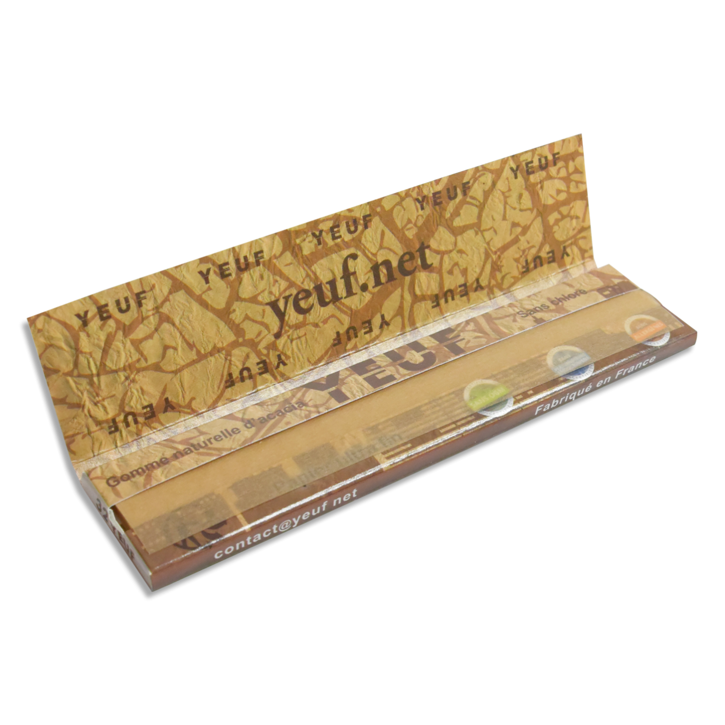 Carnet de 32 feuilles à rouler au format slim non blanchi, sans OGM, gomme arabique naturelle, Yeuf a tout pour offrir à l'utilisateur le papier à rouler ultime !