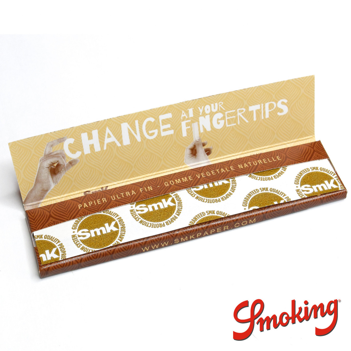 Feuilles à rouler SMK Brown au format slim, papier 100 % naturel, non blanchi, sans additif, sans colorant et garantie sans chlore.