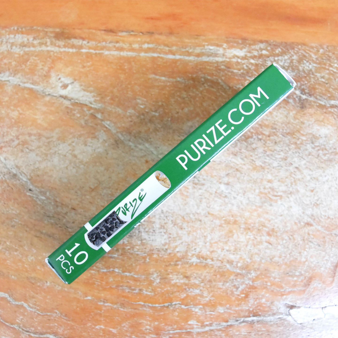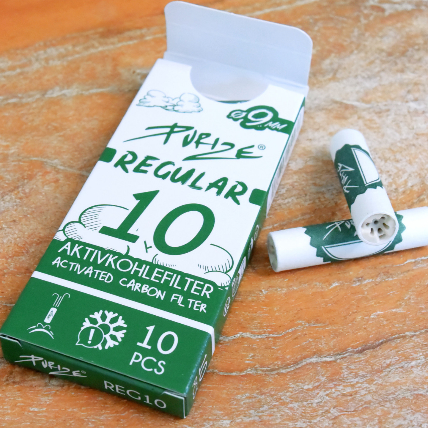 Boîte de 10 filtres PURIZE Regular Size Ø 9 mm avec charbon actif de coque de noix de coco : améliore la filtration et le tirage pour une expérience plus propre.