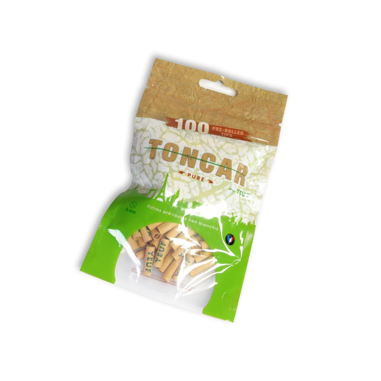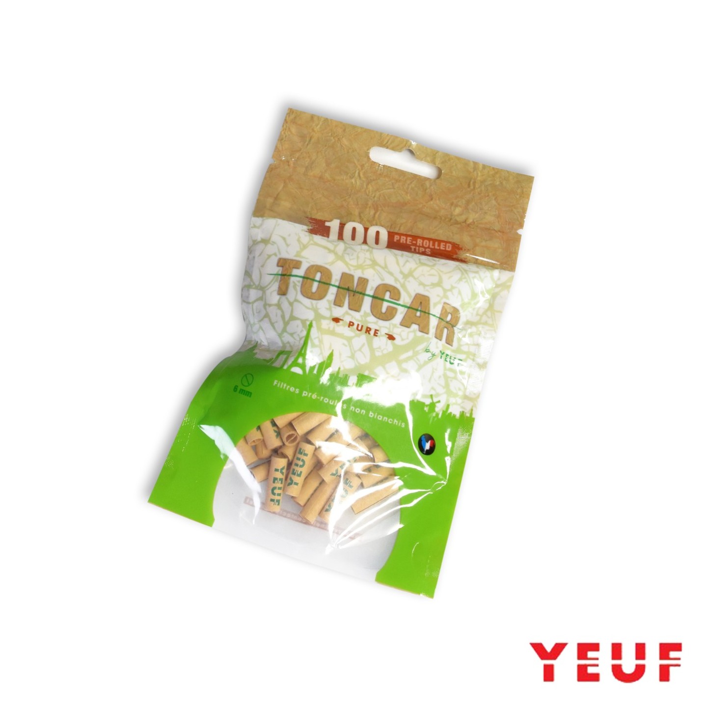 Paquet de 100 filtres en carton YEUF pure pré-roulés, prêts à l'emploi, non blanchis, 100% naturel. Définitivement un des accessoire les plus pratique.